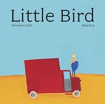 A man drives his truck up to a cliff’s edge. Unable to go any farther, he opens the back door of his truck and a flock of birds flies out. Then he notices that one small timid bird remains. Surprised and delighted, the man acts kindly towards the bird and an intimacy develops. After sharing his sandwich with the little bird, the man tries to show the bird that he should fly off and join his friends. The man’s comic atttempt at flight deepens the encounter between these two very different creatures. After a while, the bird flies off and the man drives away, but then, in a surprise twist and a strongly lyrical moment, the reader is shown something unexpected and new.